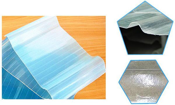 FRP采光板、系树系基复合材料,它是采用无碱玻璃纤维毡、强化聚酯树脂和进口高性能防老化薄膜(或凝胶)及添加剂等材料,经机械化连续成型的一种采光产品。由于其具有外观光洁、轻质高强、透光率高、耐腐蚀、耐老化、阻燃、断面尺寸准确、不渗水、切割长度随意、易安装、使用寿命长达15-25年等特点,深受广大用户喜爱。